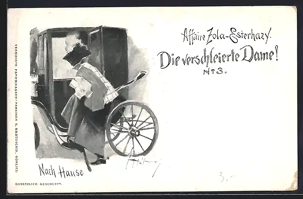 AK Affaire Dreyfus-Zola-Esterhazy, Die verschleierte Dame No. 3, Nach Hause