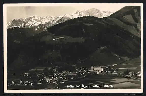 AK Aflenz, Ortsansicht mit Kirche aus der Vogelschau
