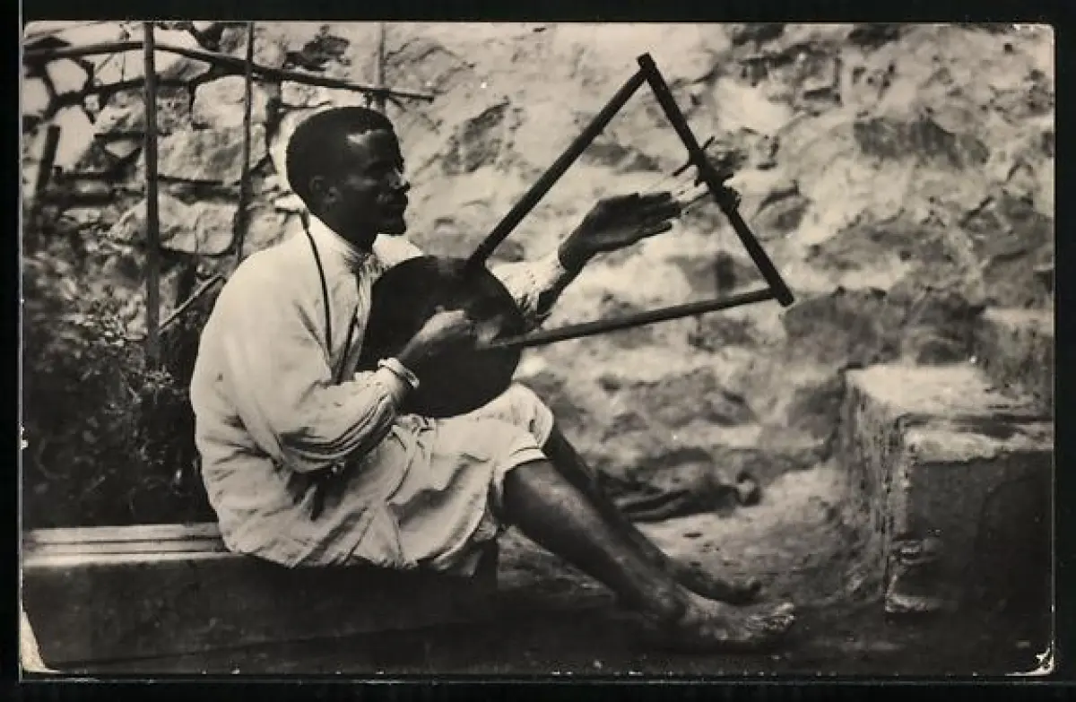 AK Afrikaner mit Musikinstrument, Abissino suonatore di chitarra