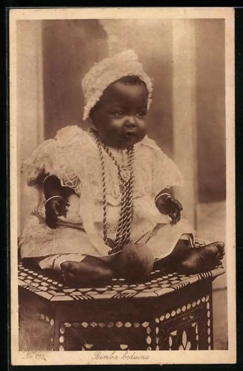 AK Afrikanisches Baby im weissen Kleid, afrikanische Volkstypen