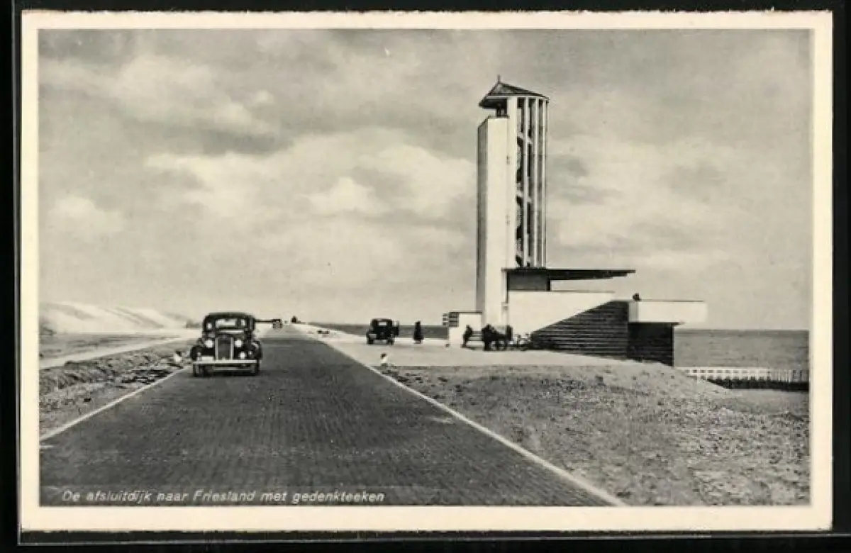 AK Afsluitdijk /Friesland, De afsluitdijk med gedenkteeken