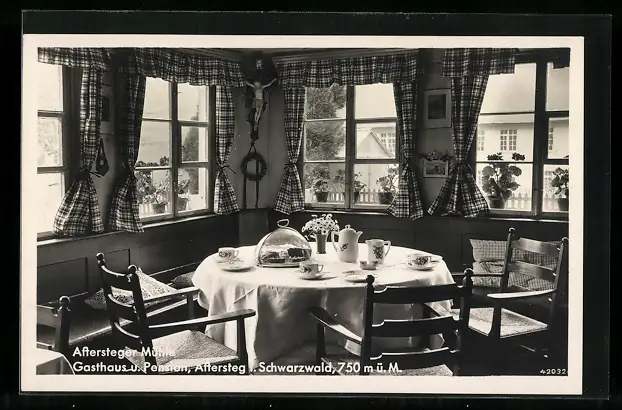 AK Aftersteg / Schwarzwald, Gasthaus-Pension Aftersteger Mühle, Innenansicht