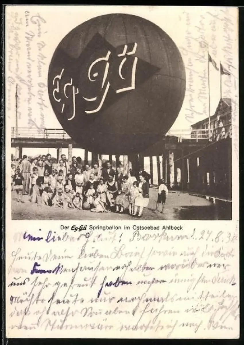 AK Ahlbeck / Ostseebad, Der Eg-Gü Spingballon am Strand