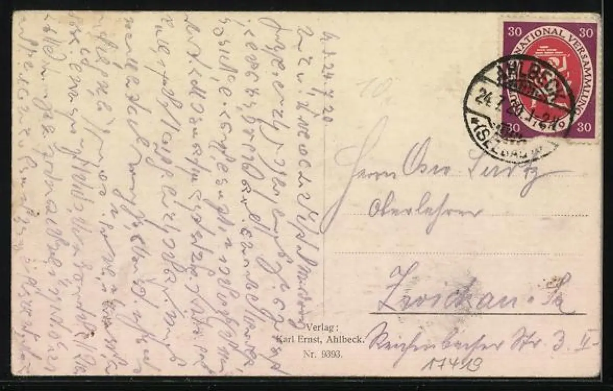alte Ansichtskarte, gelaufen 1920, Stempelspur, guter Zustand