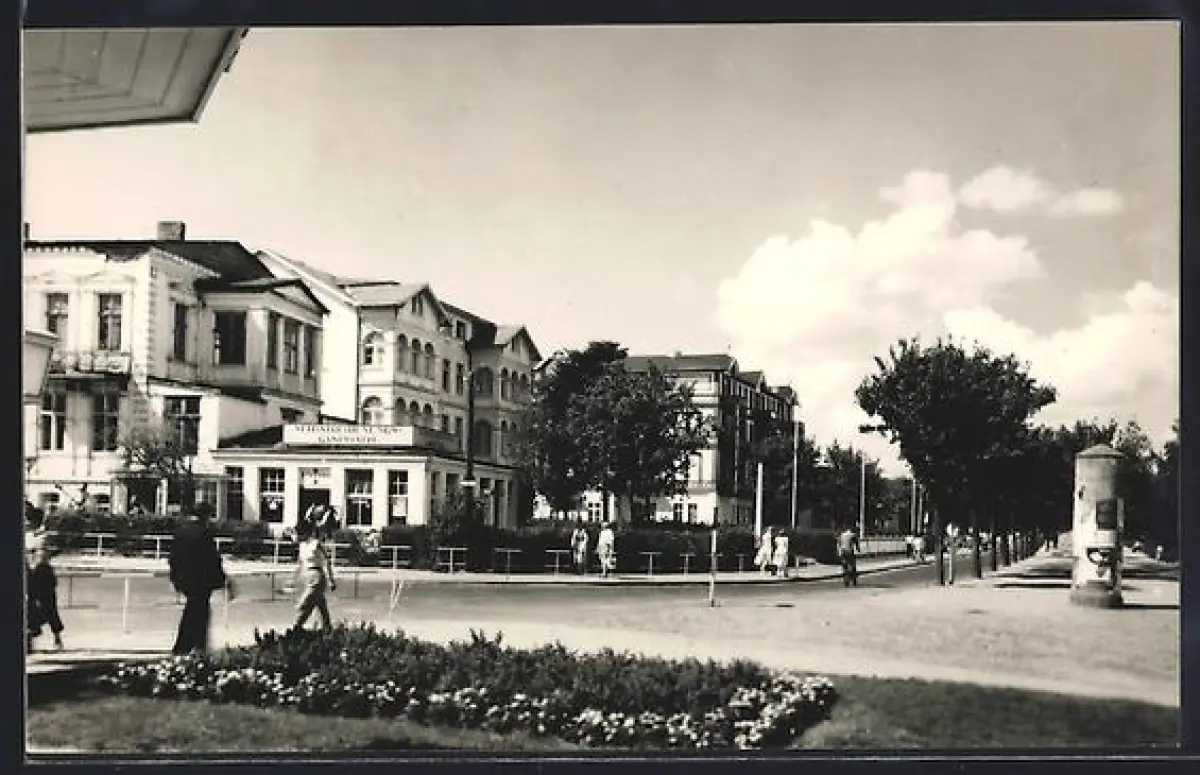AK Ahlbeck / Ostseebad, Partie an der Promenade mit Gaststätte