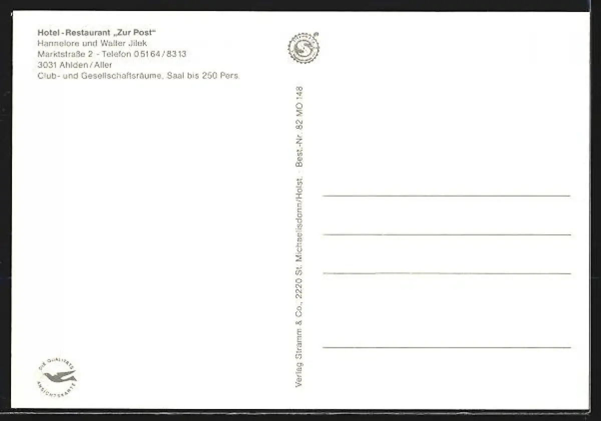 AK Ahlden /Aller, Hotel-Restaurant Zur Post, Inh. Hannelore u. Walter Jilek, Marktstrasse 2
