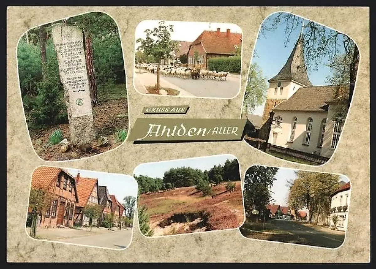 AK Ahlden /Aller, Kirche, Gedenkstein, historische Ortsansichten