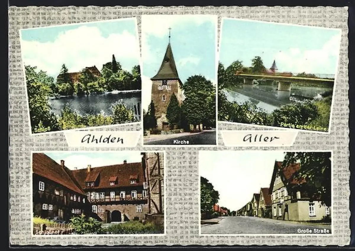 AK Ahlden /Aller, Schloss, Kirche, Partie an der Leine, Grosse Strasse