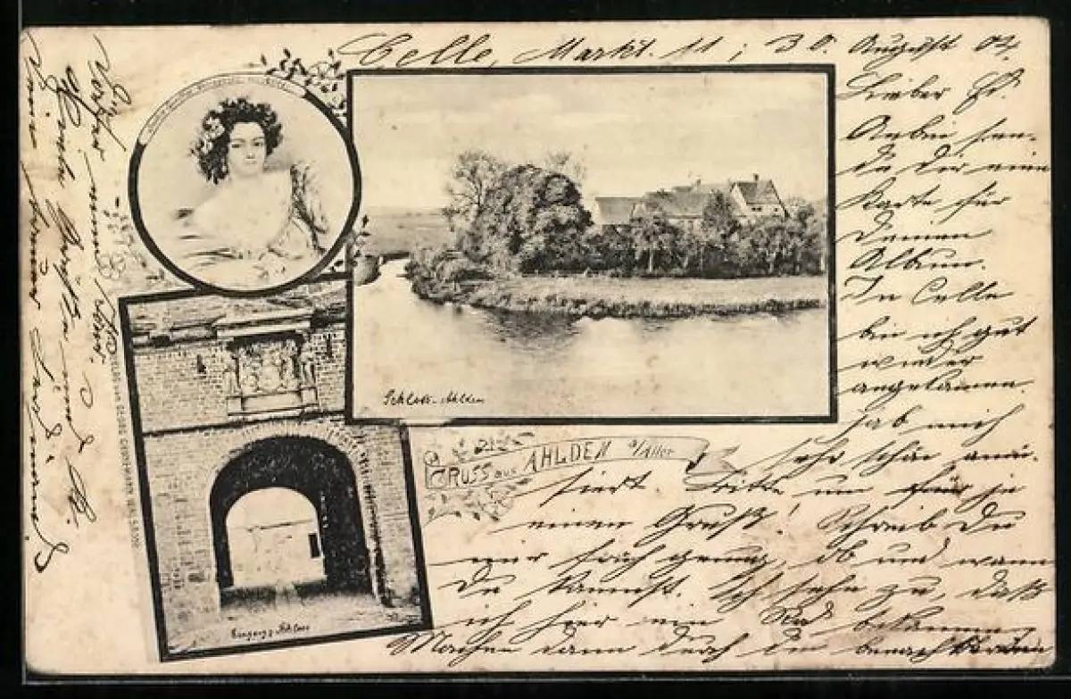 AK Ahlden a. Aller, Eingang z. Schloss, Portrait Sophie Dorothee Prinzessin von Ahlden
