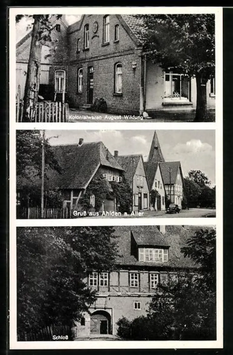 AK Ahlden a. Aller, Kolonialwaren August Wildung, Schloss