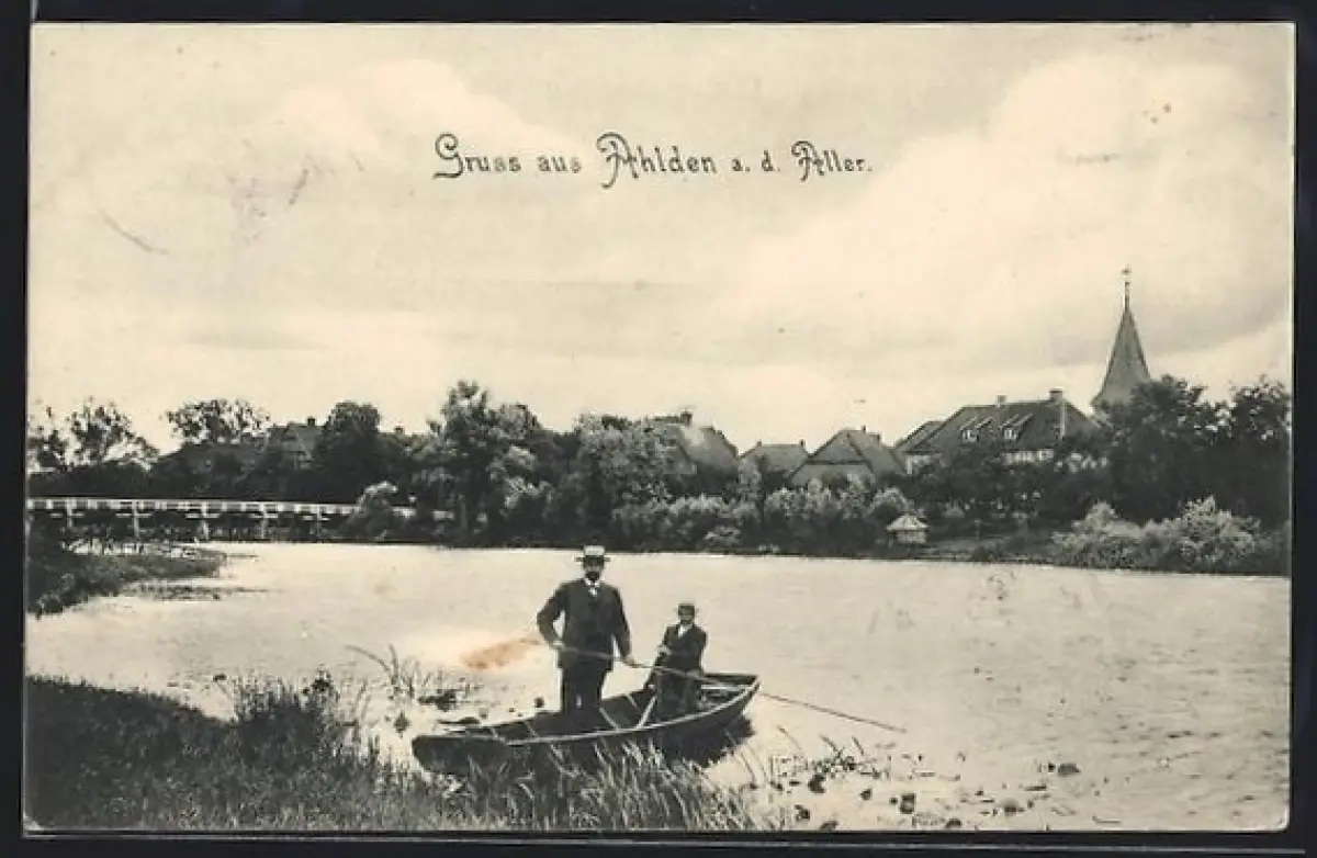AK Ahlden a. d. Aller, Uferpartie mit Ruderboot nebst zwei Herren
