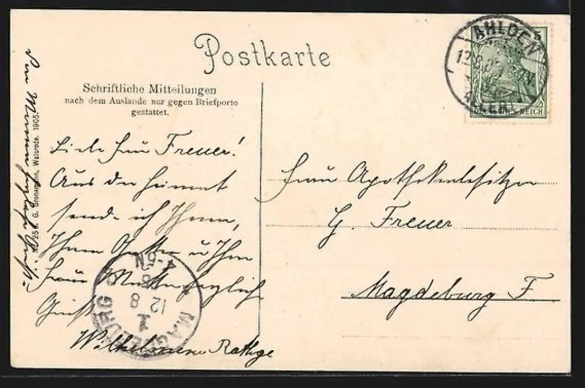 alte Ansichtskarte, gelaufen 1905, Stempelspur, guter Zustand