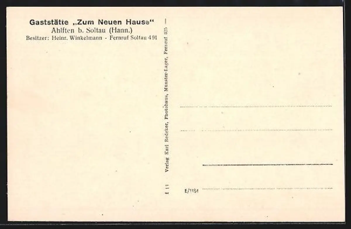 AK Ahlften b. Soltau, Gasthaus Zum Neuen Hause, Bes. Heinr. Winkelmann