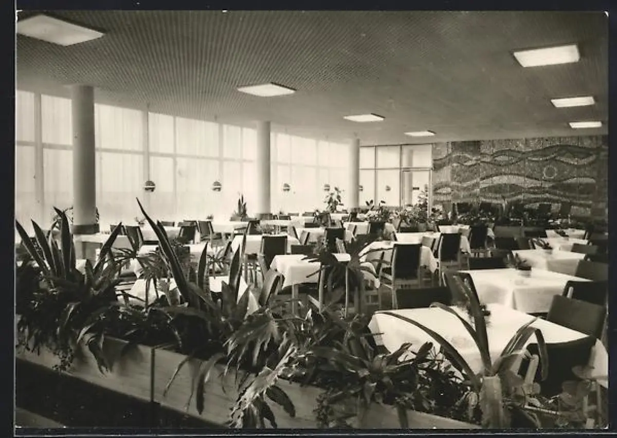 AK Ahrenshoop, Ostseebad mit Innenansicht des Erholungsheim mit Restaurant