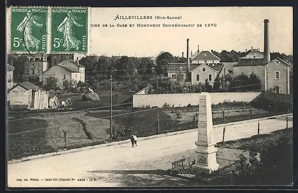 AK Aillevillers, Quartier de la Gare et Monument Commémoratif de 1870