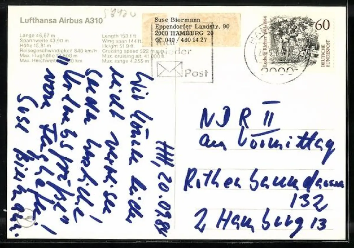 gelaufen 1984, rückseitig Klebe- und Papierreste, guter Zustand