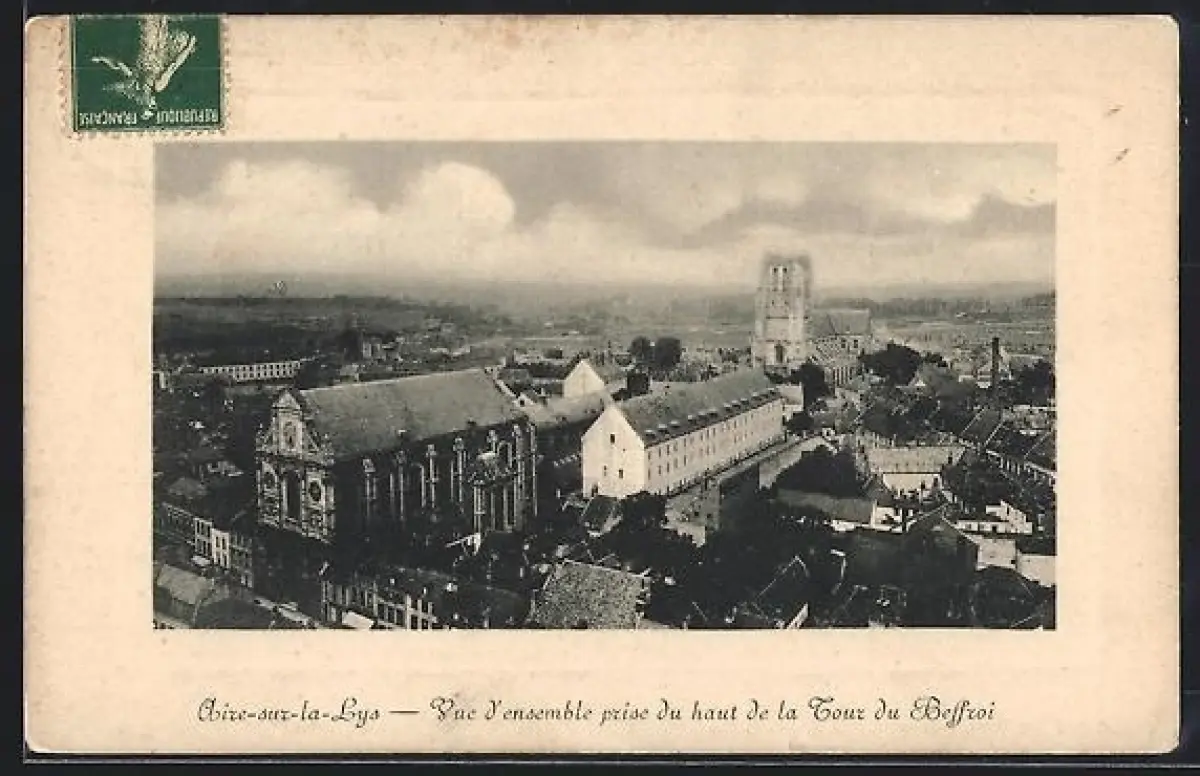 AK Aire-sur-la-Lys, Vue d`ensemble prise du haut de la Tour du Beffroi