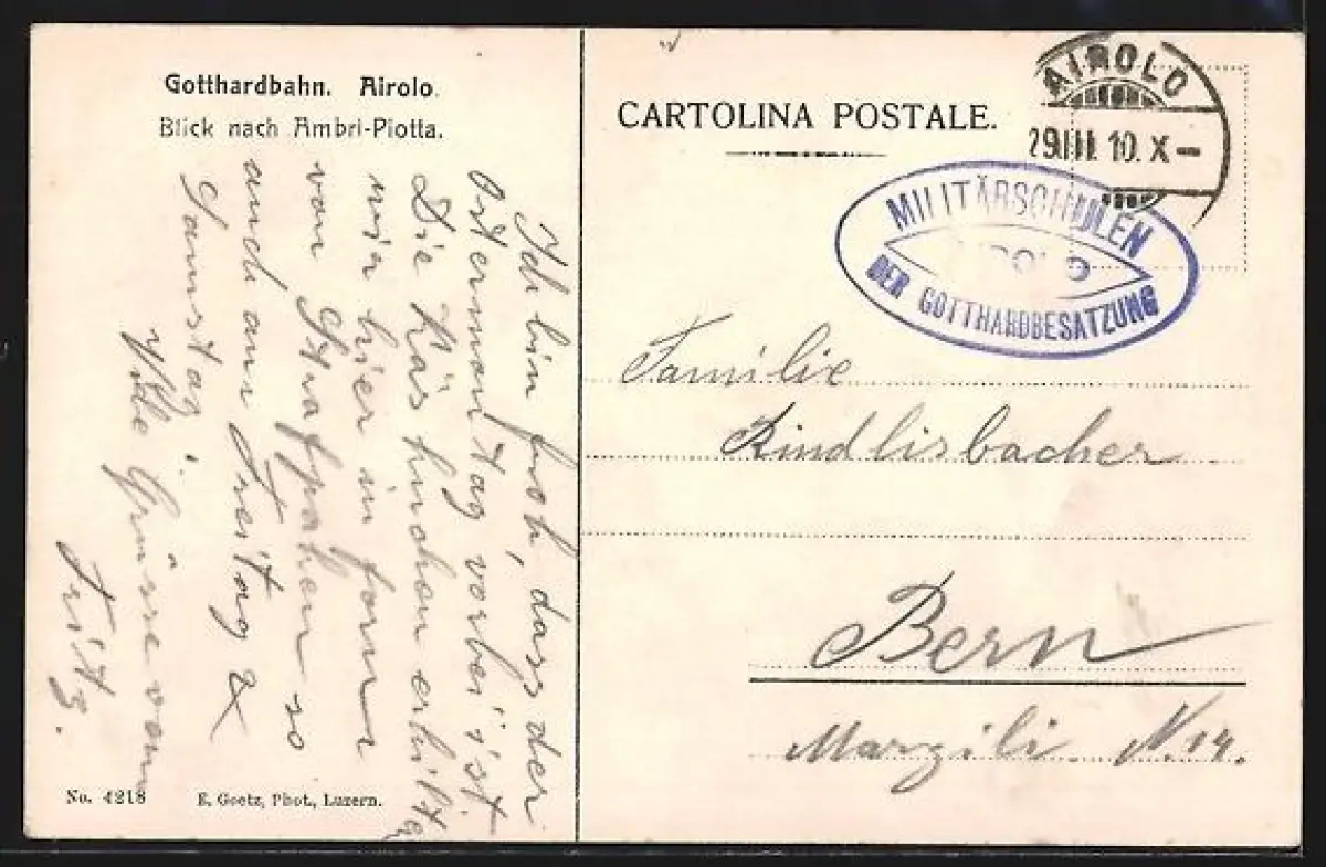 AK Airolo, Gotthardbahn gegen Ambri-Piotta