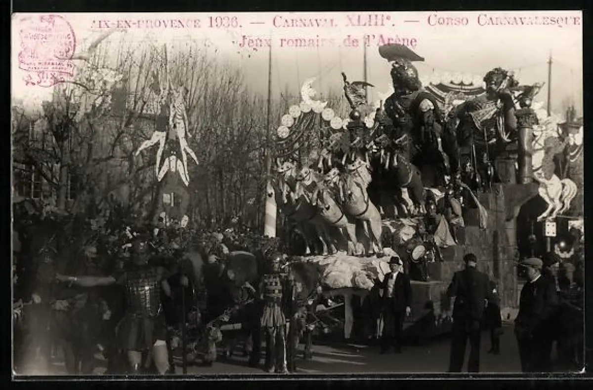 AK Aix-En-Provence, Carneval 1936, Umzugswagen mit römischen Motiven