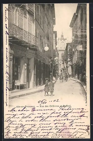 AK Aix-en-Provence, Rue des Orfèvres et Beffroi