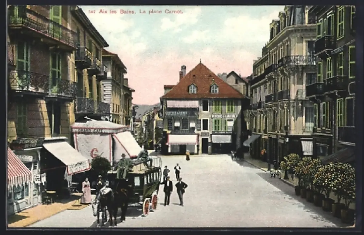 AK Aix-les-Bains, La place Carnot avec calèche et passants