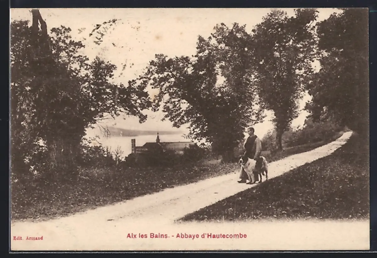 AK Aix les Bains, Promenade vers l`Abbaye d`Hautecombe avec deux chiens