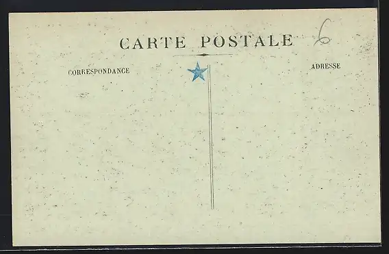 Personenbezogene Daten auf der Rückseite der Karte wurden durch blauen Textmarker unkenntlich gemacht. Die blauen Stellen sind auf die Vorderseite durchgeweicht und wirken sich negativ auf das Postkartenfoto aus