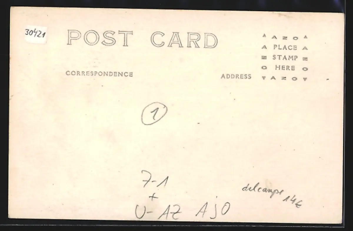 Personenbezogene Daten auf der Rückseite der Karte wurden durch blauen Textmarker unkenntlich gemacht. Die blauen Stellen sind auf die Vorderseite durchgeweicht und wirken sich negativ auf das Postkartenfoto aus