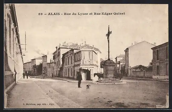 AK Alais, Rue du Lycee et Rue Edgar Quinet