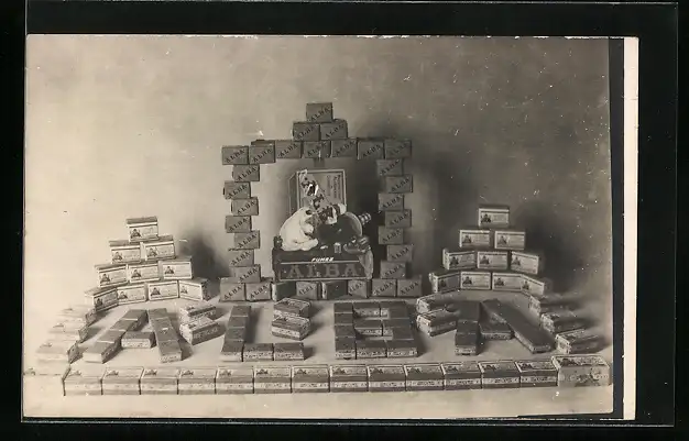 AK Alba Tabak, ausgelegte und gestapelte Zigarettenschachteln