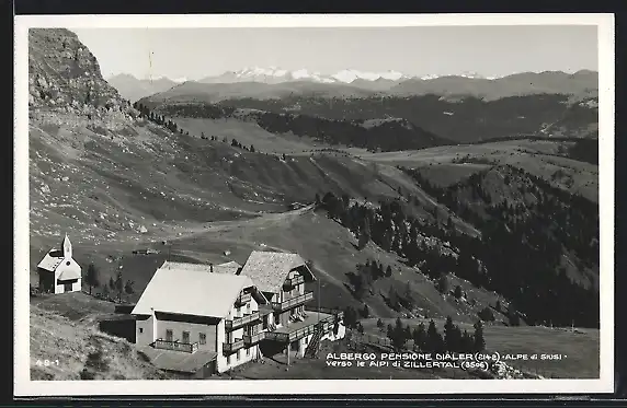 AK Albergo Pensione Dialer, Ansicht mit Zillertaler Alpen
