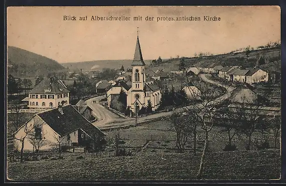 AK Alberschweiler, Ortsansicht mit der protestantischen Kirche