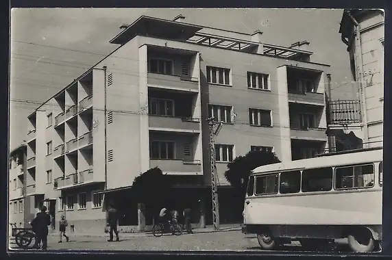 AK Aleksinac, Strassenpartie mit einem Autobus
