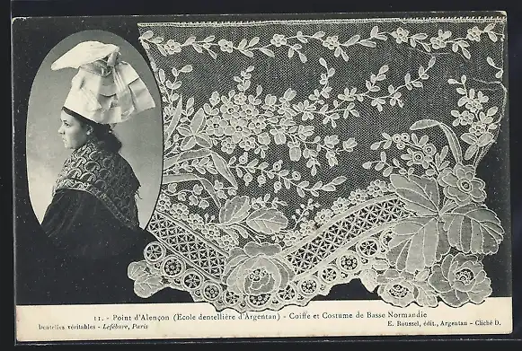 AK Alencon, Ecole dentellière d`Argentan, Point d`Alencon, Junge Frau in normannischer Tracht mit Haube