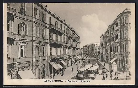 AK Alexandria, Boulevard Ramleh, Strassenbahn