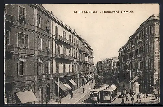 AK Alexandria, Boulevard Ramleh mit Strassenbahn