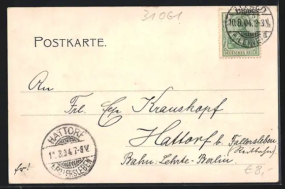 alte Ansichtskarte, gelaufen 1904, Stempelspur, guter Zustand