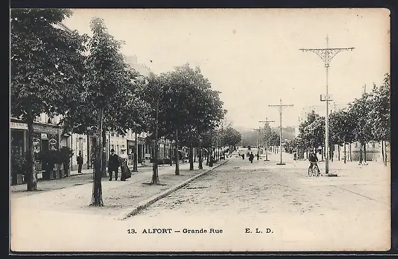 AK Alfort, Grande Rue avec passants et arbres alignés