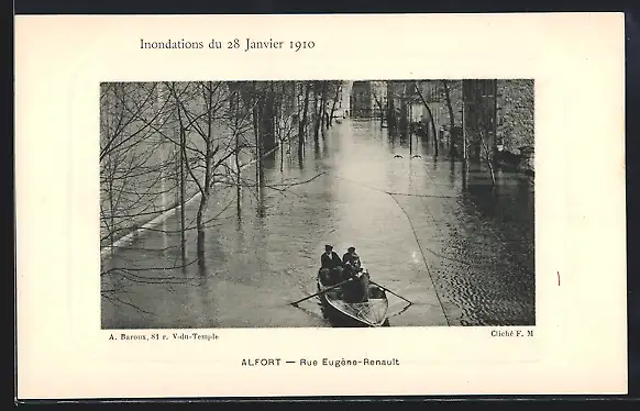 AK Alfort, Inondations 1910, Rue Eugène.Renault