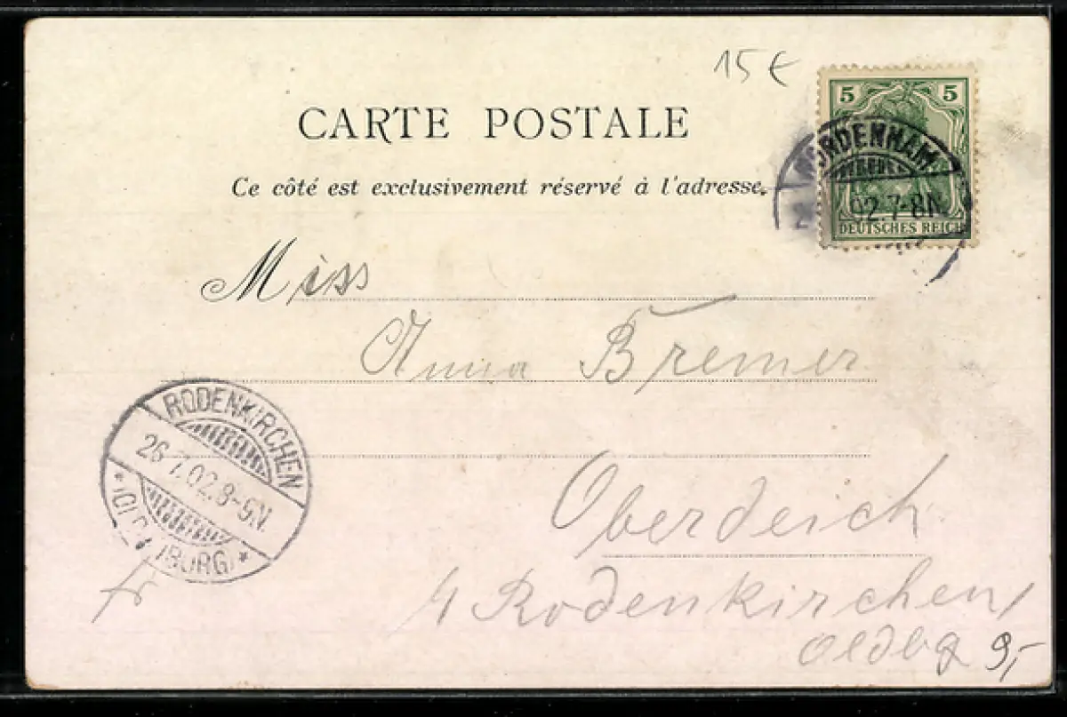 alte Ansichtskarte, gelaufen 1902, Stempelspur, guter Zustand