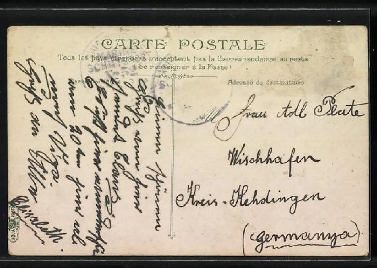 alte Ansichtskarte, gelaufen, Briefmarke entfernt, kl. Einriss oben, guter Zustand