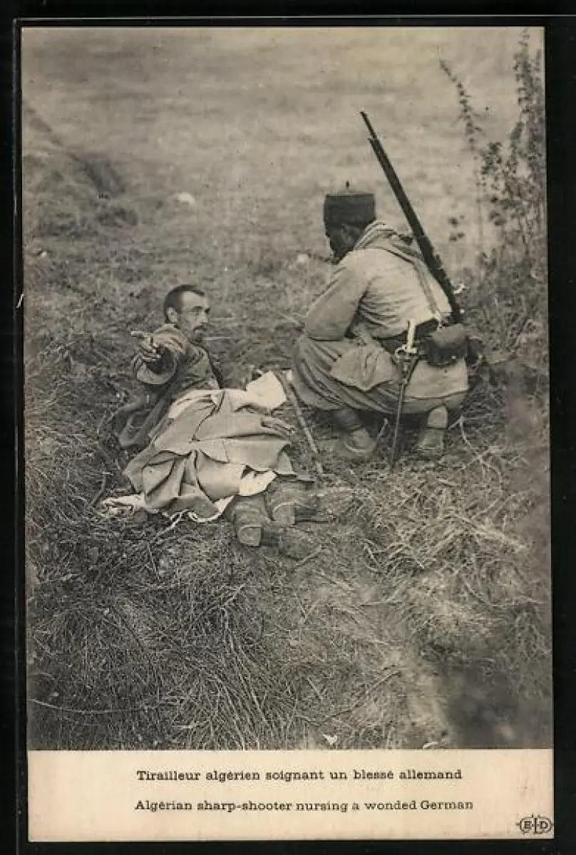 AK Algerischer Scharfschütze pflegt einen verwundeten deutschen Soldaten, Infanterie