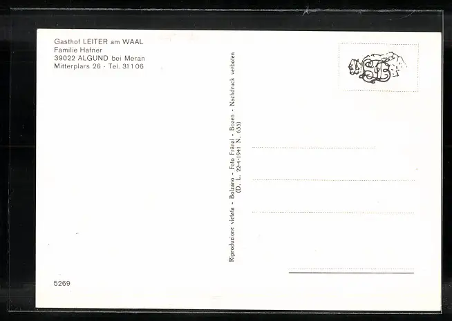 AK Algund bei Meran, Gasthof Leiter am Waal, Mitterplars 26