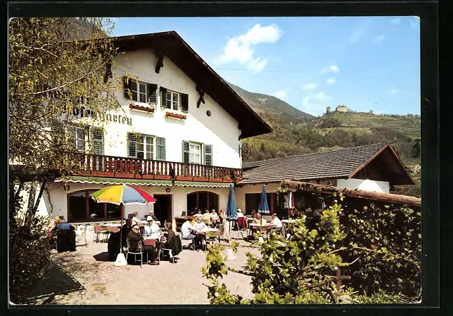 AK Algund bei Meran, Gasthof Martins Rosengarten - Innenhof mit Gästen