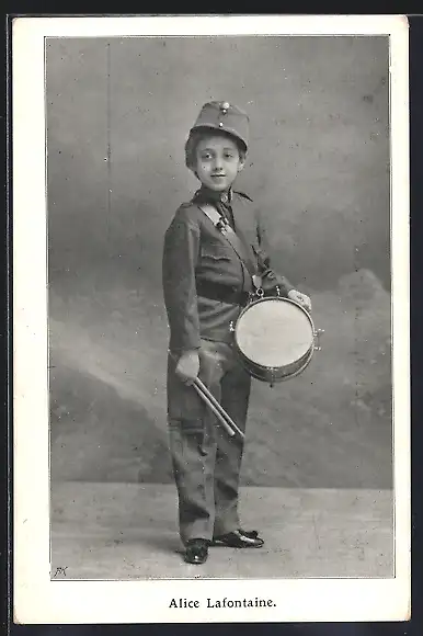 AK Alice Lafontaine in Uniform mit Trommel, Variete