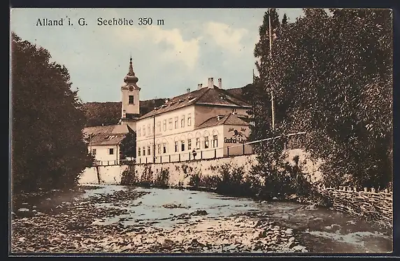 AK Alland i. G., Flusspartie mit Blick auf Gasthaus Löwe
