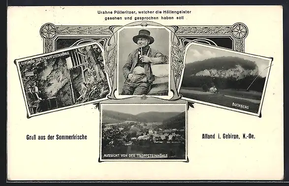AK Alland i. Gebirge, Exzentriker Urahne Pölleritzer, Tropfsteinhöhle, Buchberg
