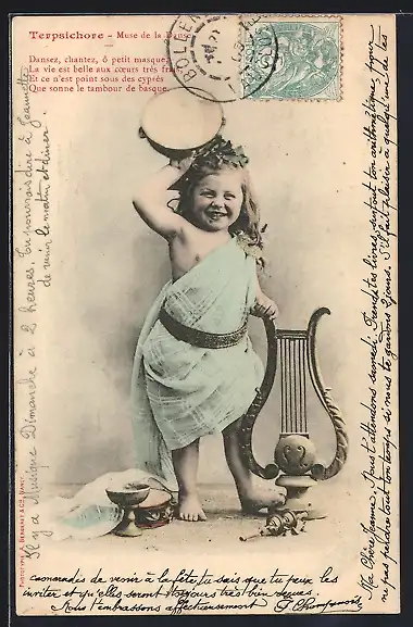 AK Allegorie, Terpsichore, Muse de la Danse, Kleinkind als Verkörperung der Muse des Tanzes