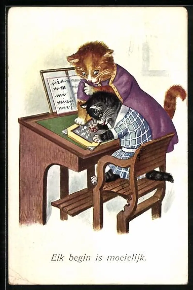 AK Aller Anfang ist schwer, Katzenkind lernt Schreiben, vermenschlichte Tiere
