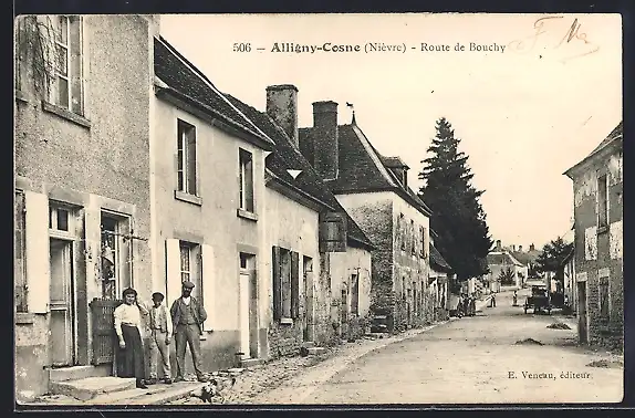 AK Alligny-Cosne, Route de Bouchy avec habitants devant les maisons